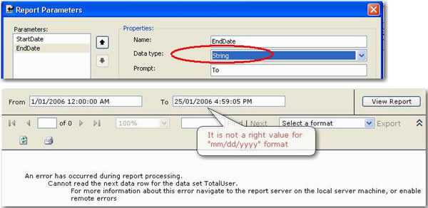 rs:ParameterLanguage=en-AUin the query string, this is very important especially when you are passing culture sensitive data (DateTime) over URL. The server may not know your intended culture so you have to specify this together with the actual data in the URL.Refer to the following MSDN references for more details: