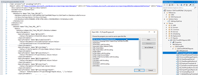When working with SSRS reports, you need to have the right type of project otherwise it will be difficult for a developer, to create new reports or update existing ones.