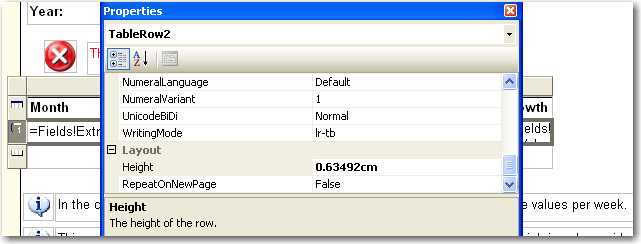 Note: Reporting Services reports accept both inches and cm, so you can use either.