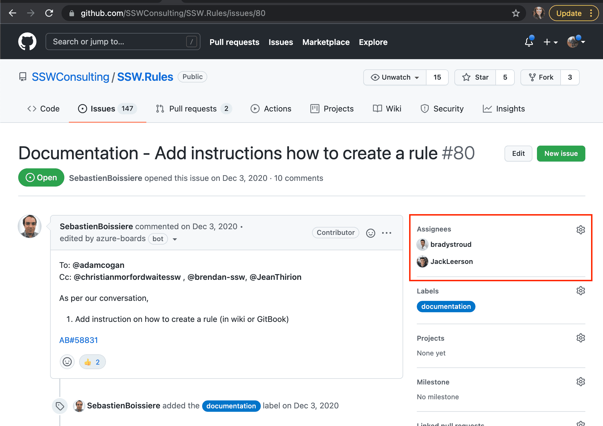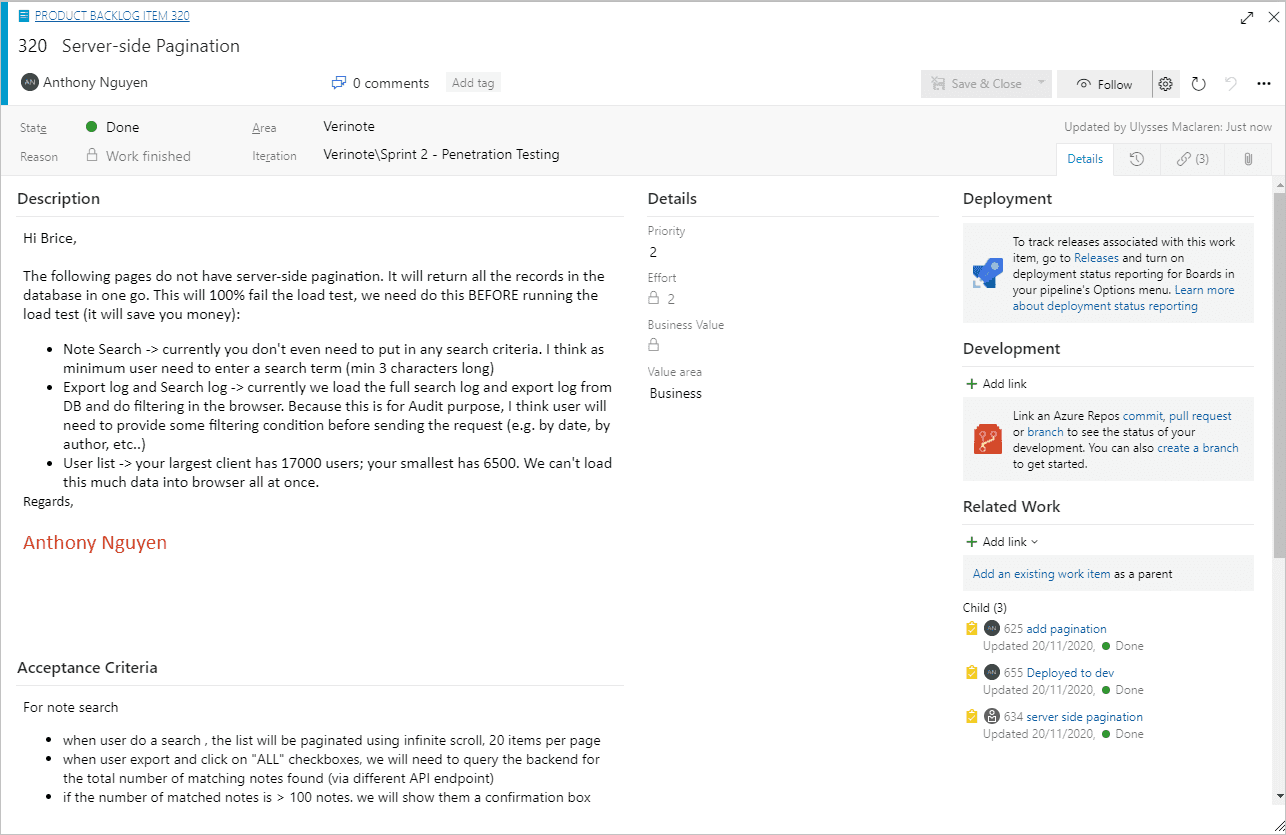 Tip: When adding technical requirements, prefix them with "Technical – " so their purpose is clear to everyone (e.g. "Technical – New CQRS Query made to get all employees").