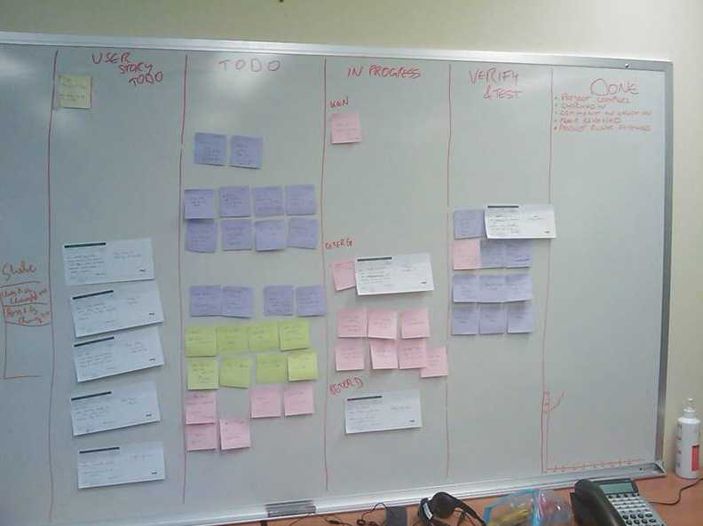 The Developers work on features in priority order, having done a Daily Scrum and sending 'Done' emails once the 'Definition of Done' is met. A task board is often used. During this process, the team also refines items in the Product Backlog to ensure they conform to the 'Definition of Ready'.