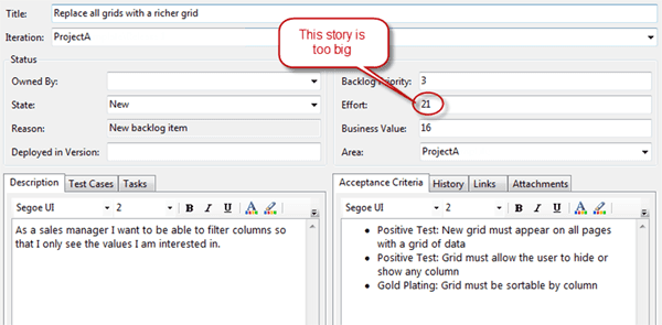 Tip: Work closely with the Product Owner to identify potential "gold plating" in the PBI. Suggest creating a separate PBI for the functionality that is nice to have but has lower priority. Doing so allows developers to focus on building the most important functionality for the PBI first and prevents valuable time being wasted on gold plating.