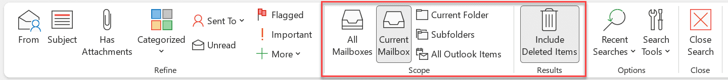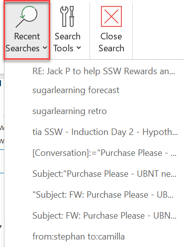 Figure: Outlook has a lot of meta data filtering options Learn more: How to search in Outlook.