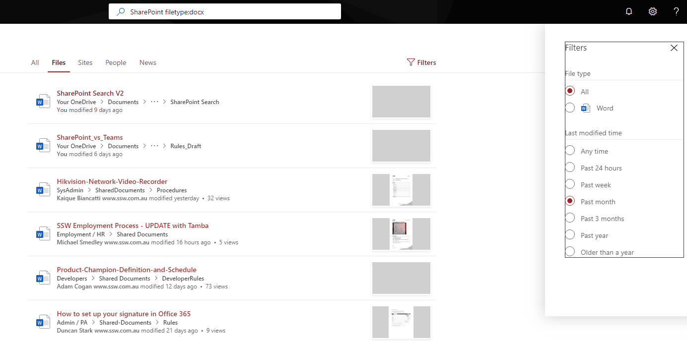 Video: Why SharePoint Search is Awesome! How to use SharePoint Search | Jean Thirion (4 min)- Use the categories (top)