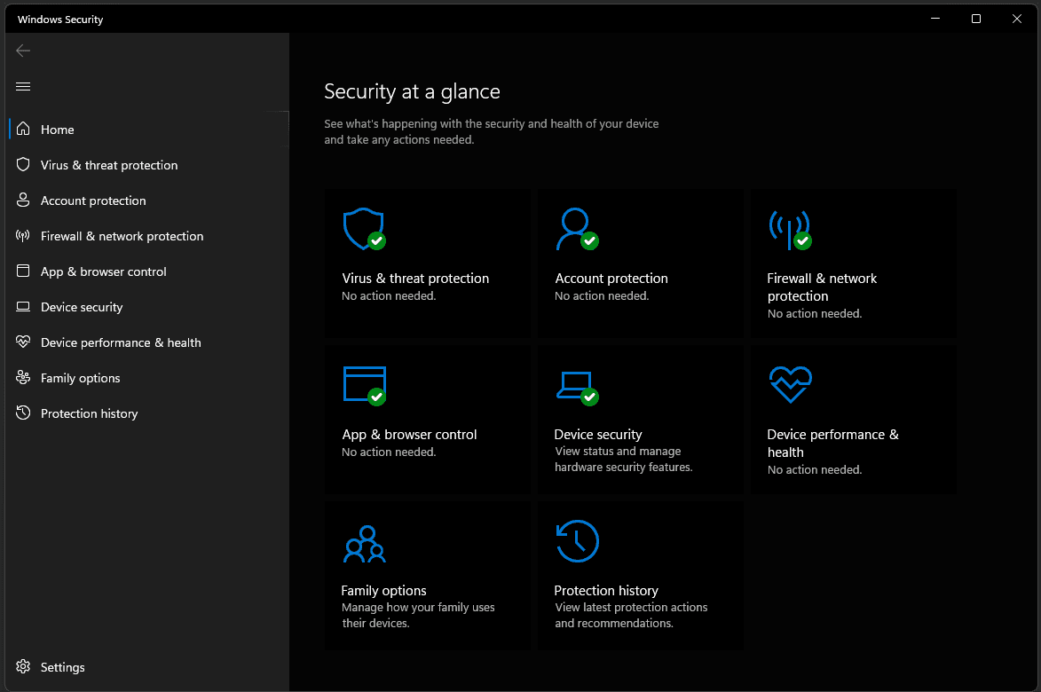 Figure: You want green ticks on these 5 settings Users are often exposed to viruses on their machines. Virus scans help identify and remove potential threats on your machine. Windows comes with built-in protection called virus and threat protection that is suitable for most situations.