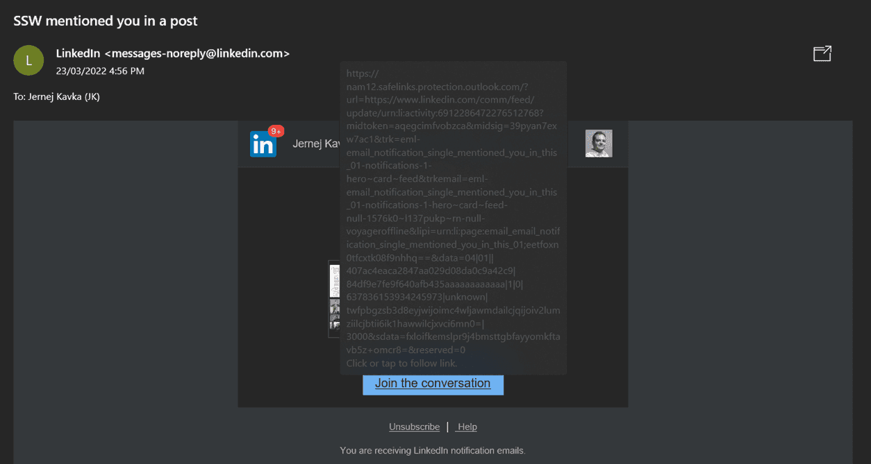 Figure: Some URLs are harder to identify because of a safelink service Tip #8: Subscribe to the Australian Cyber Security Centre's (ACSC) alert service