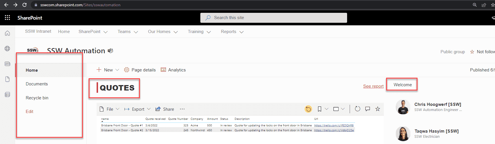 Figure: Sharepoint News - Streamlined and easily accessable Getting Started