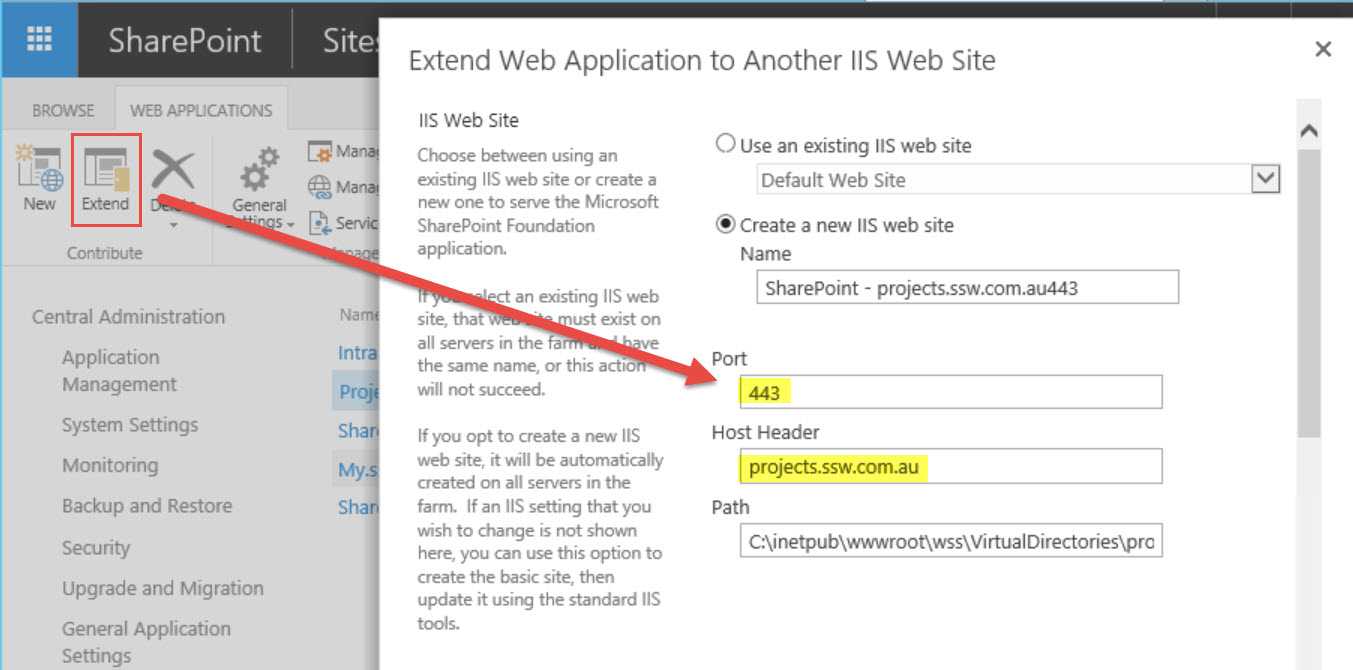 - extend the web application to an internet zone, this should be https to provide secure connection