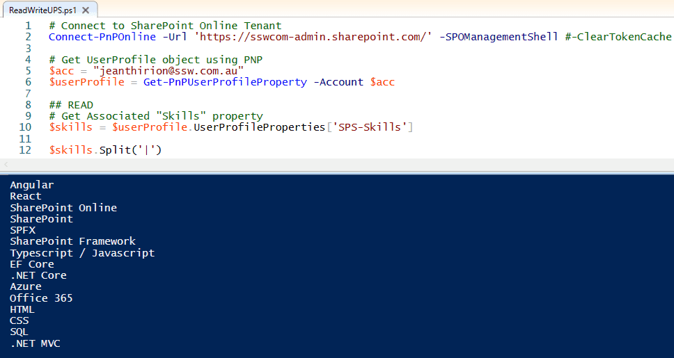 Figure: Powershell - Reading skills from UserProfile