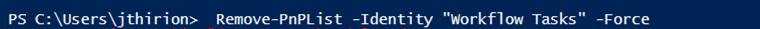 Remove-PnPList -Identity "Workflow Tasks" -ForceHowever, on system Lists, you may get an error: