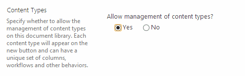 Figure: Enable Content Type management in library setting -