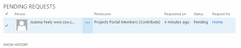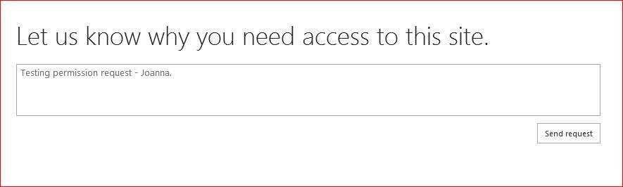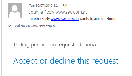 Figure: Joanna is requesting access to SharePoint site The "request manager" will receive an email: