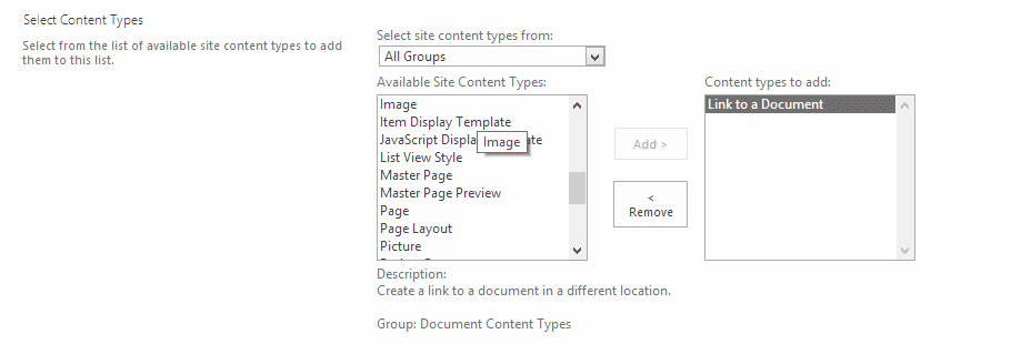 Add "Link to a Document" content type into the library.