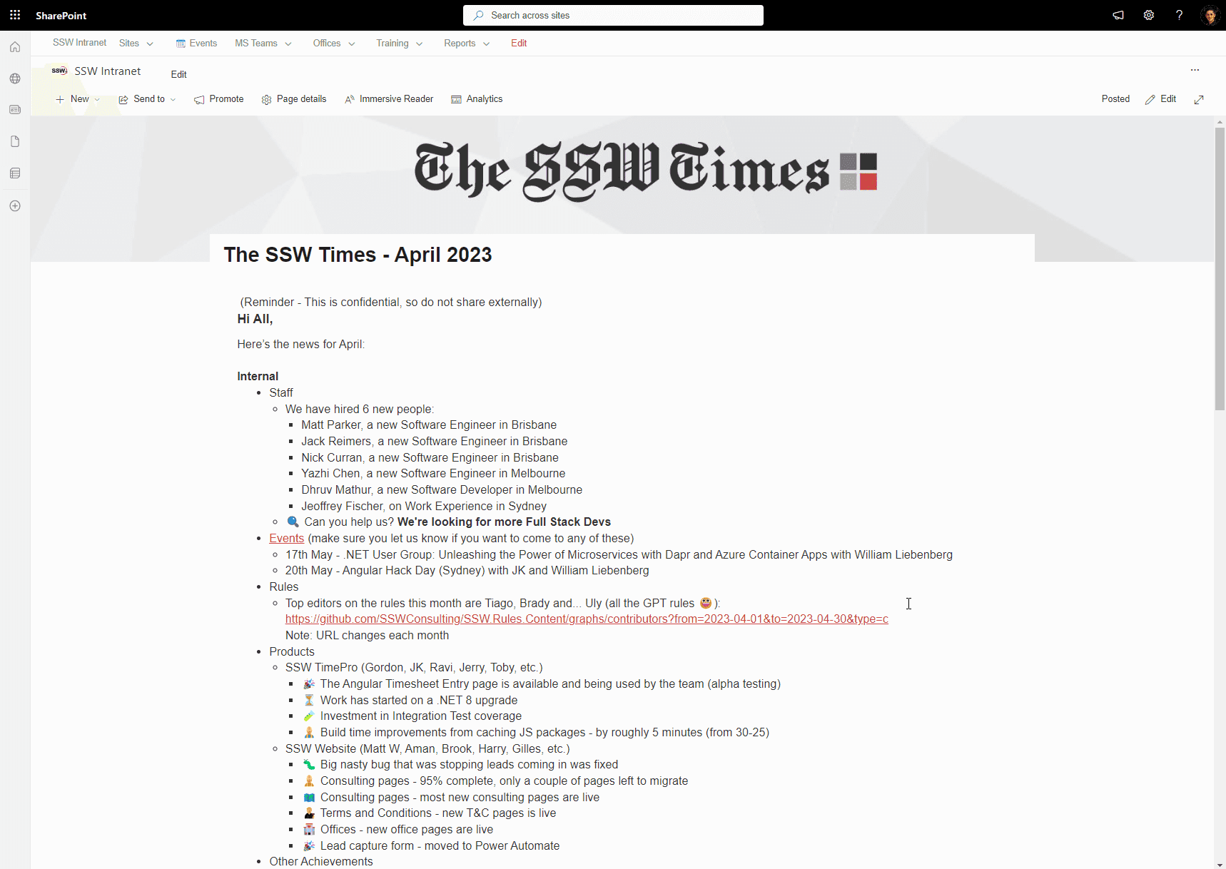 - Follow a consistent naming convention, such as using the format "The-SSW-Times-YYYY-MM" (e.g., The-SSW-Times-2023-05).