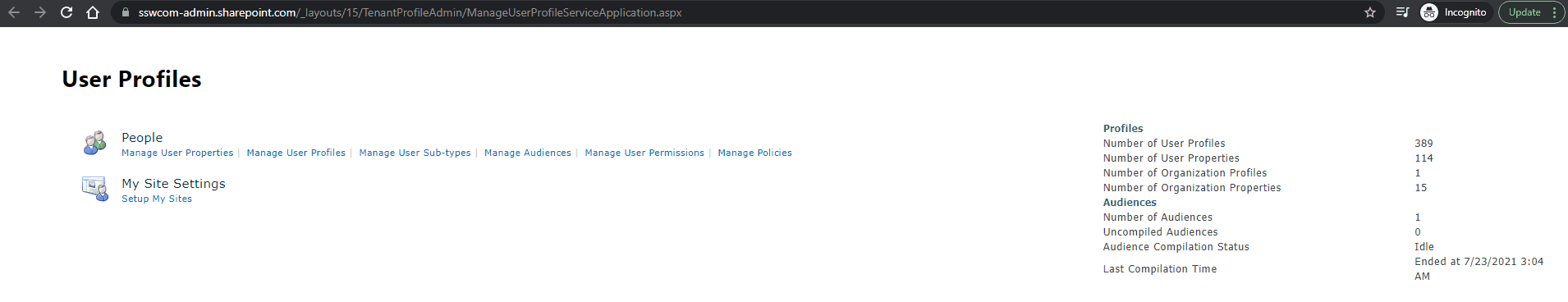 Figure: User Profile UI in your SharePoint Admin Centre – generally this is not needed the Delve out of the box experience works for your organisation Delve is a cool product with a nice UI that is essentially a portal onto the User Profiles.