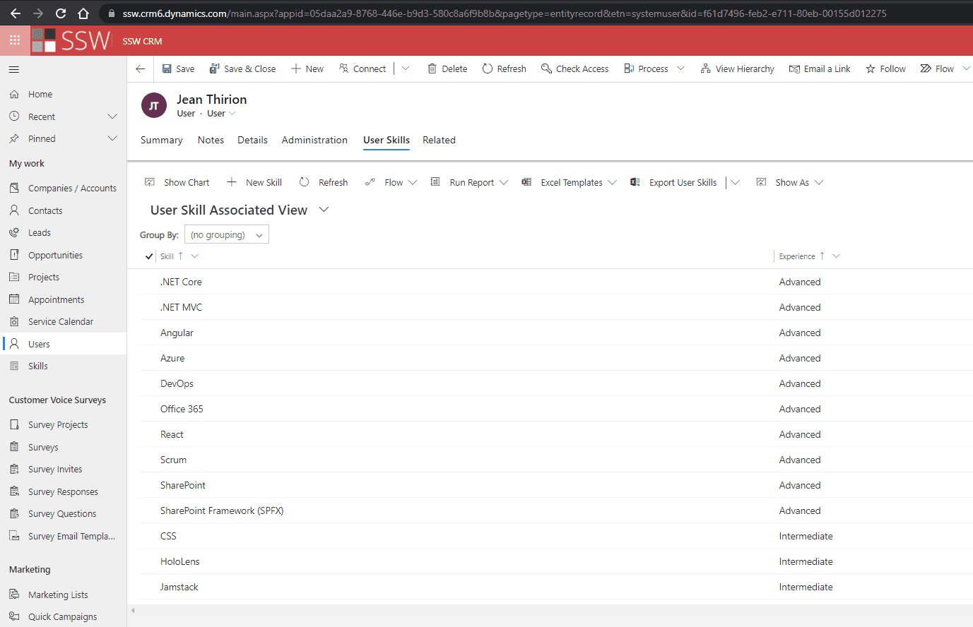 The beauty of this is that if everyone has updated their skills, it is wonderfully searchable.