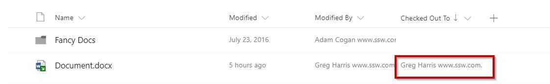 Figure: Here Greg Harris has not checked in a file There are 2 ways to remind users of their "checked out files":