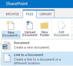 Figure: select "File | New Document (dropdown) | Link to a document"