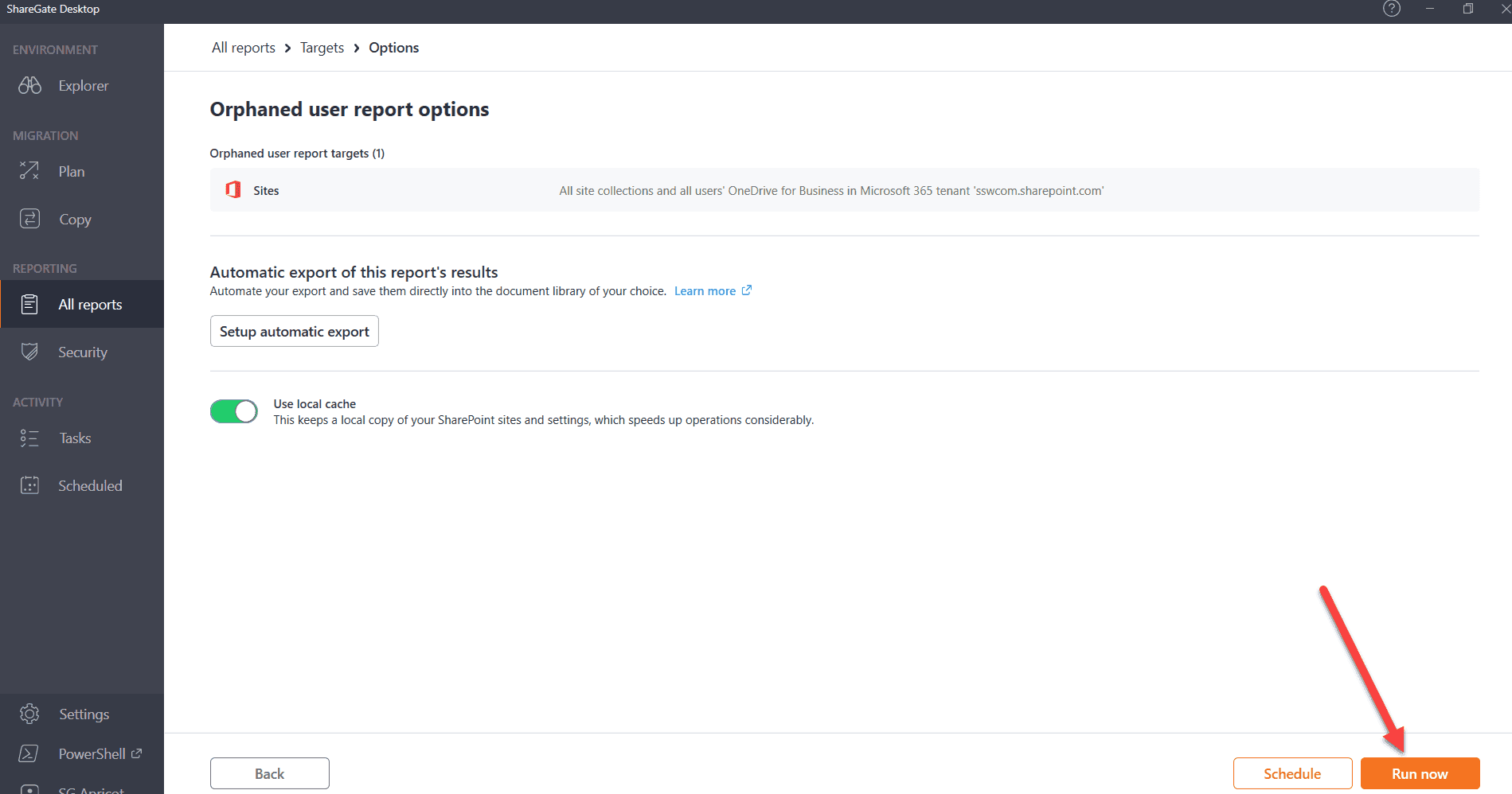 - Click All reports | Orphaned user report