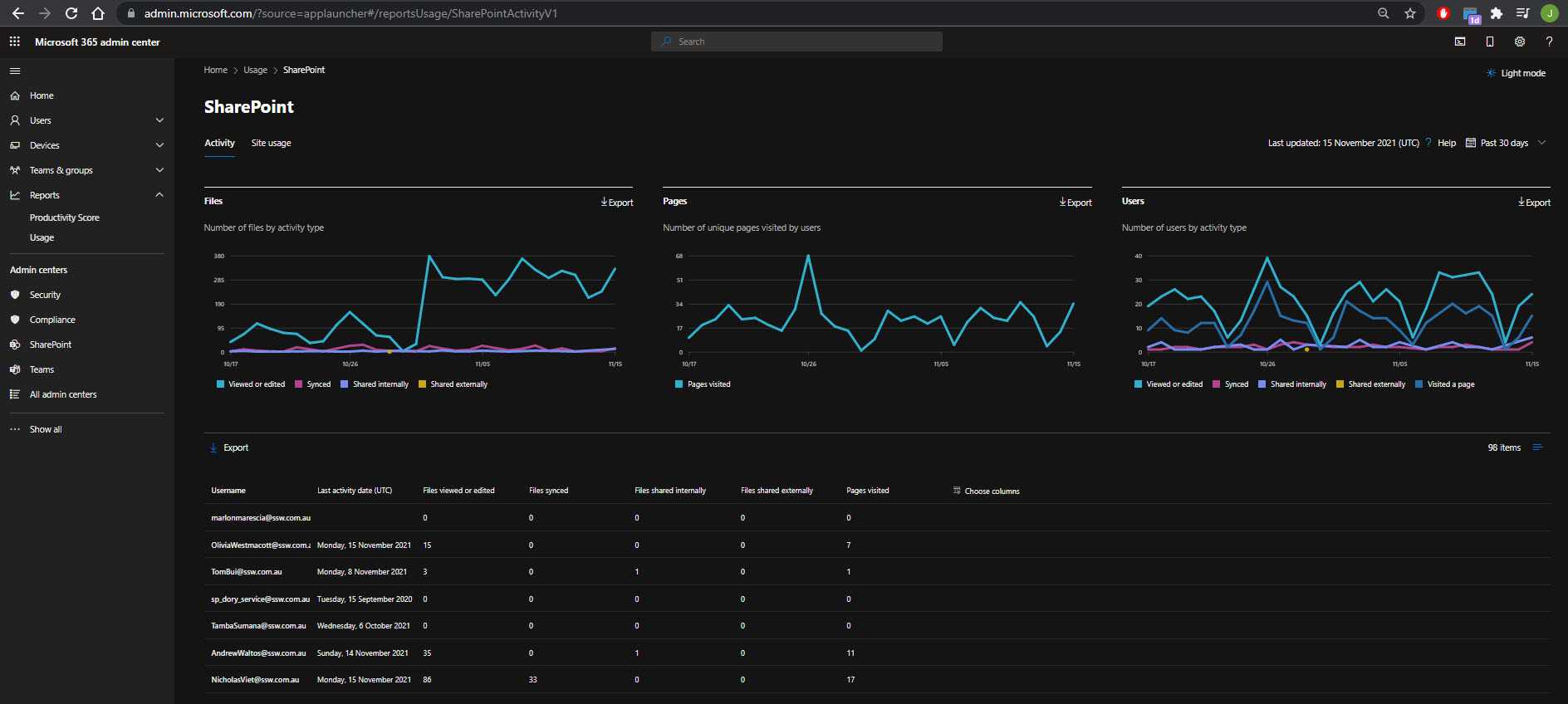 This is by far the most interesting and import report. You need special (tenant-level) permissions to access those usage reports