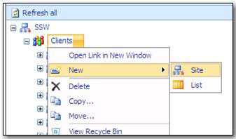 - Go to the root where you want to create a site. E.g. sharepoint.ssw.com.au
