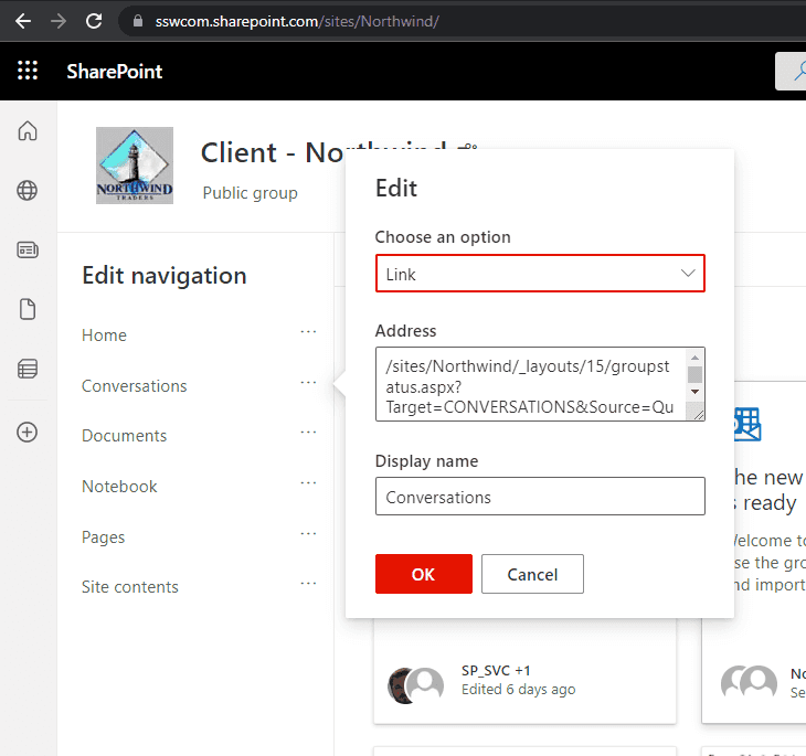 Figure: Northwind portal Note: SharePoint will send "welcome email" to all the members of the groups you created for the site with basic information, but you still need to send an email to your customer with the login details like URL, username, and password.