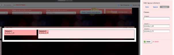 Figure: You have the ability to assign a Class to a Div only. No other customisations can be made Additionally, Sitefinity will hard code the widths of the layout and there is no way to stop it.The hack work around is to manually remove the widths via JQuery: