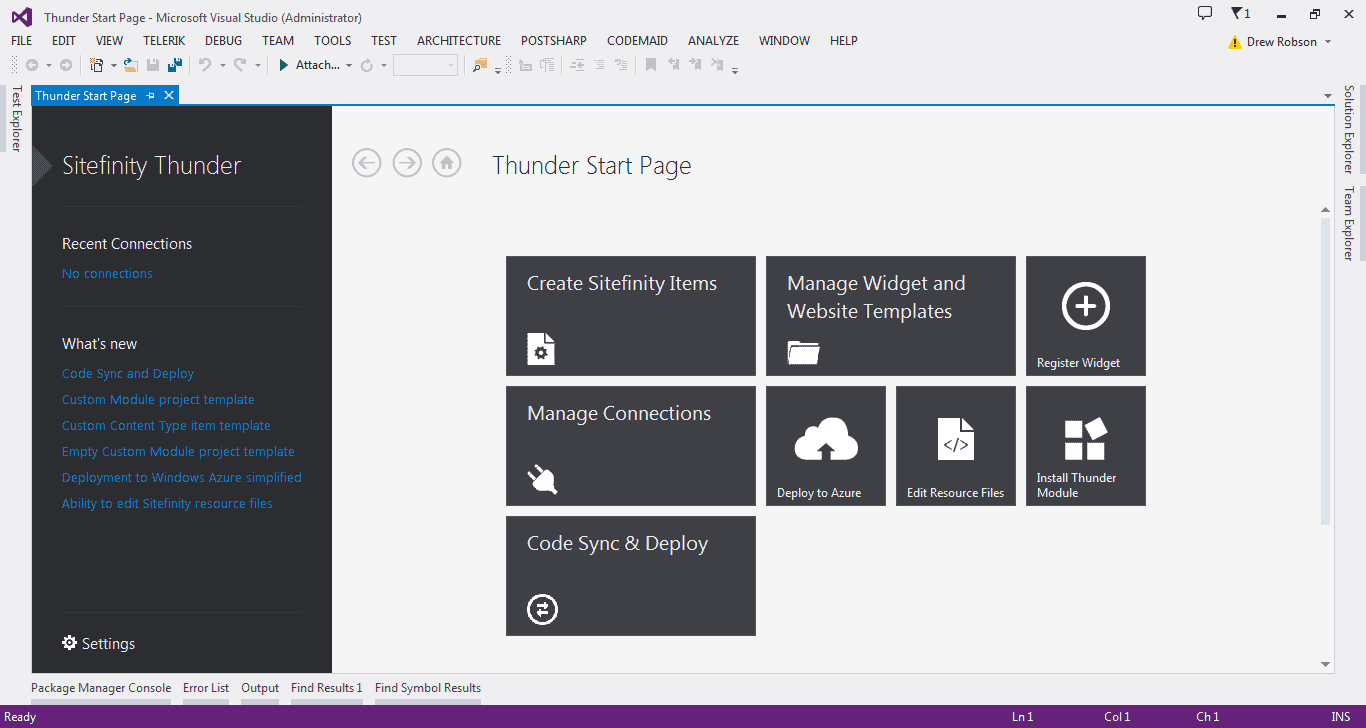 Sitefinity Thunder integrates with Visual Studio and provides rich functionality to develop and deploy custom Sitefinity changes.