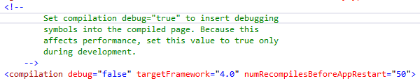 Figure: Default compilation settings in Sitefinity