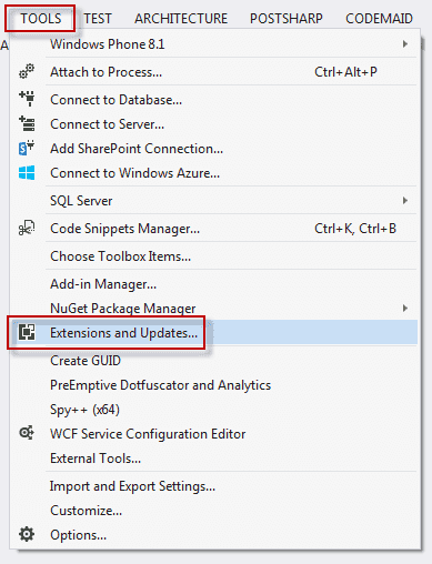 Figure: Add an extension to Visual Studio