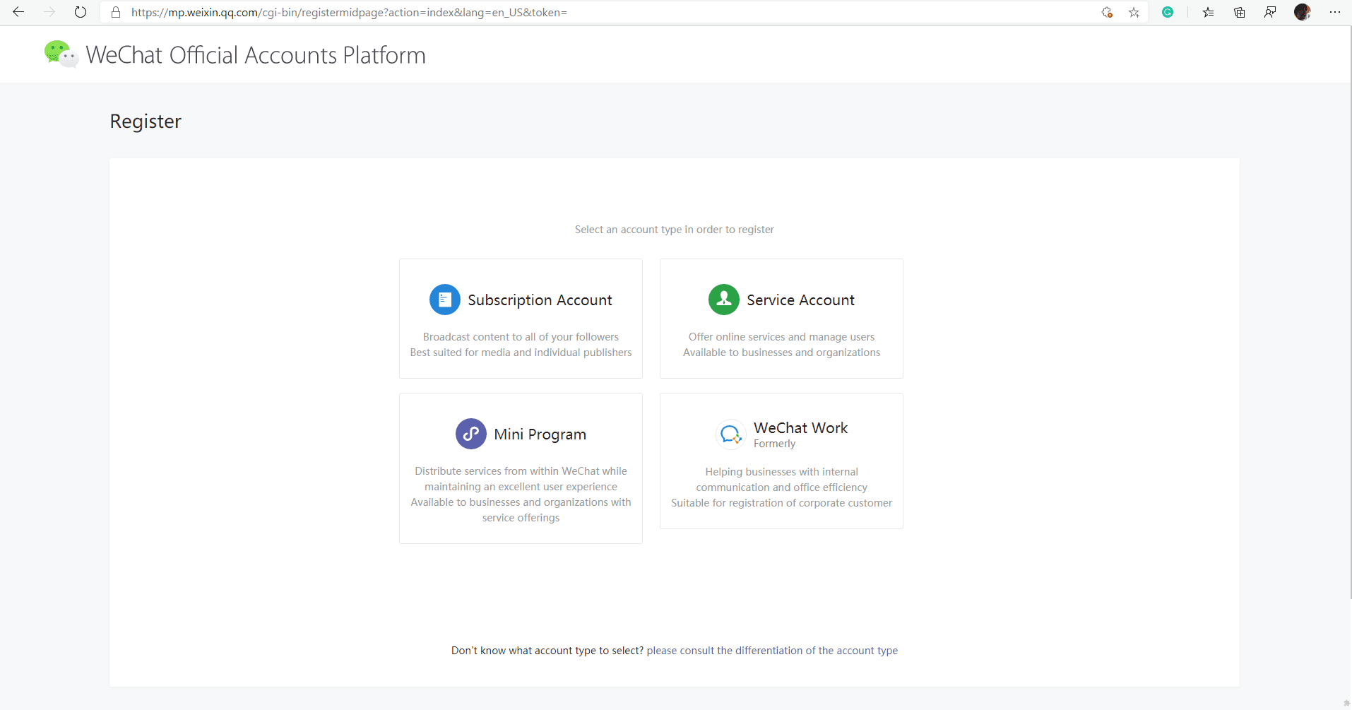 Figure: So far WeChat only accept China mainland, so click “Confirm” to continue - Select your account type