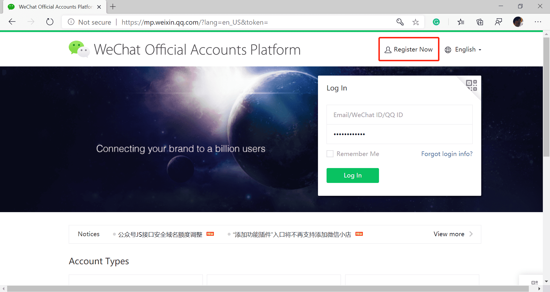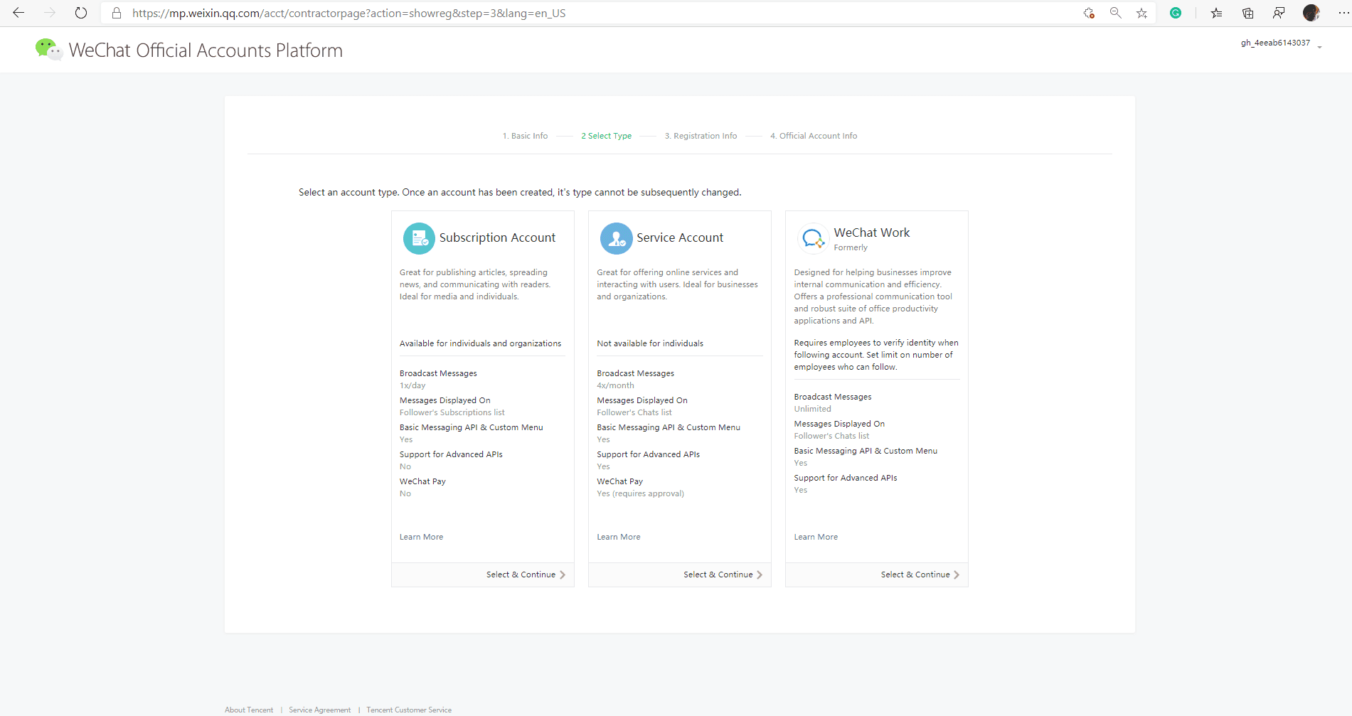 - Choose Subscription Account as an example (the register steps for other options are similar)