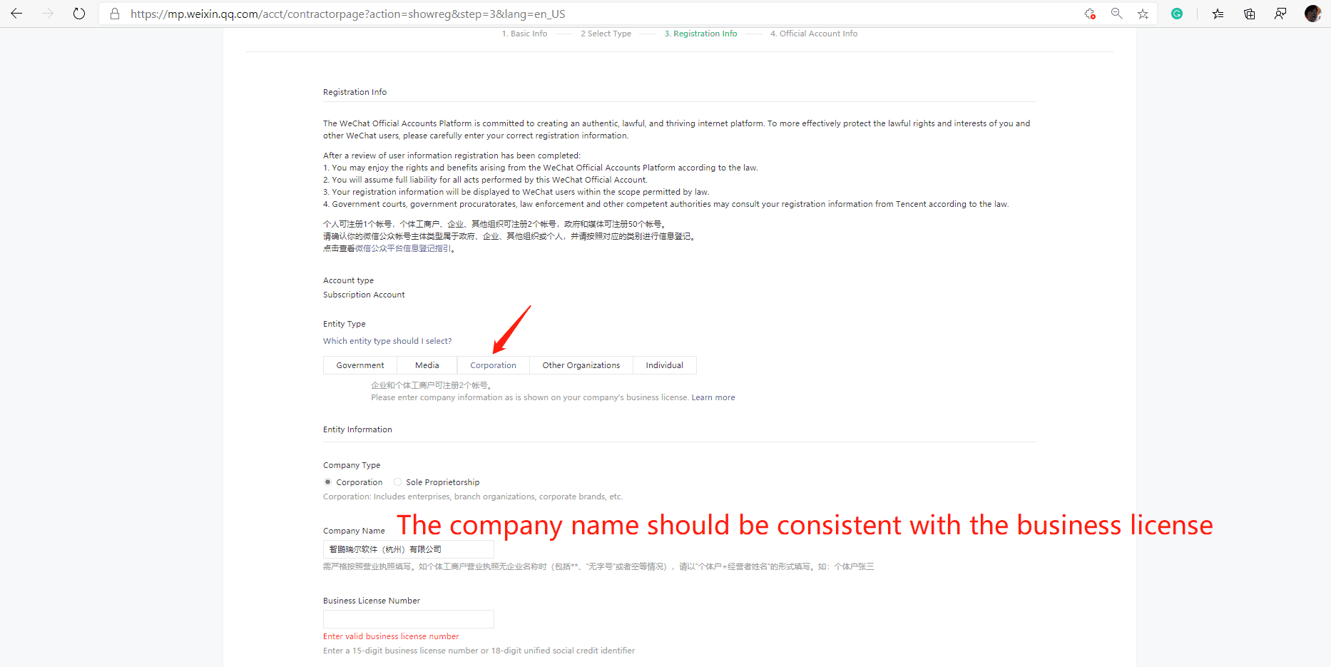 Figure: As a company, we choose “Corporation” to continue