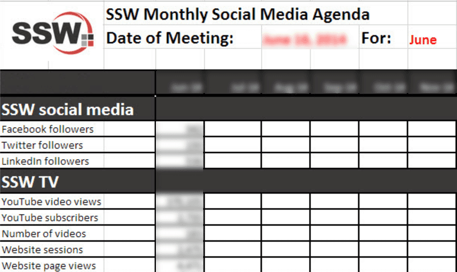 - After this, create a spreadsheet that you can update every month to keep track of your marketing activities.