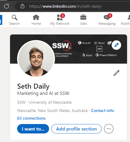 - Go to your profile. Your connection count is displayed on the introduction card at the top of your profile.