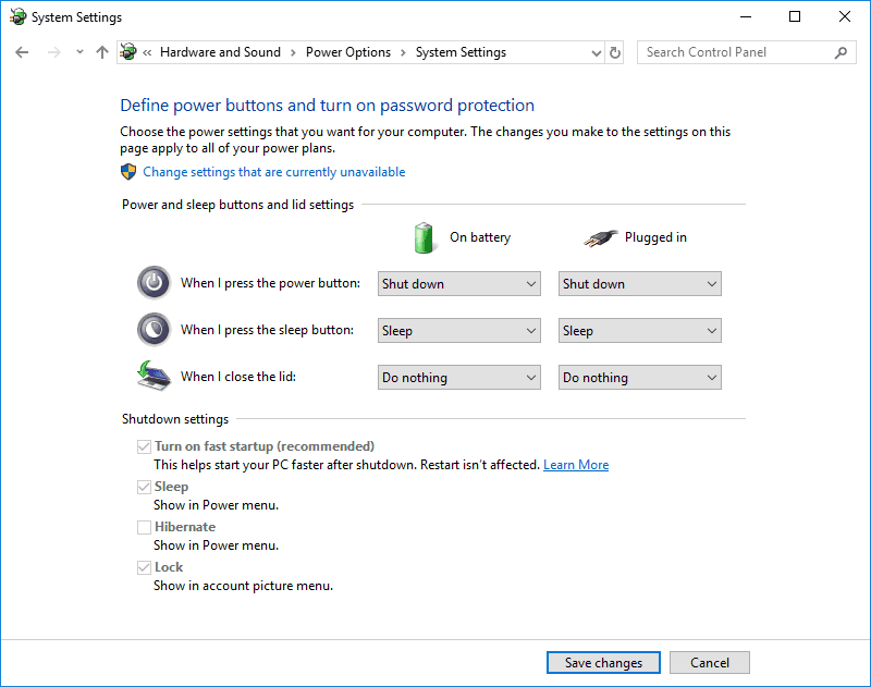 Your notebook should also be configured so that if it is left in suspend for a long period of time (more than 10 minutes) it will automatically hibernate. However, your notebook should not automatically suspend or hibernate if the lid is simply closed. Both of these settings are in the Power Options in Control Panel.