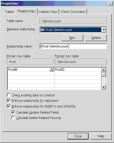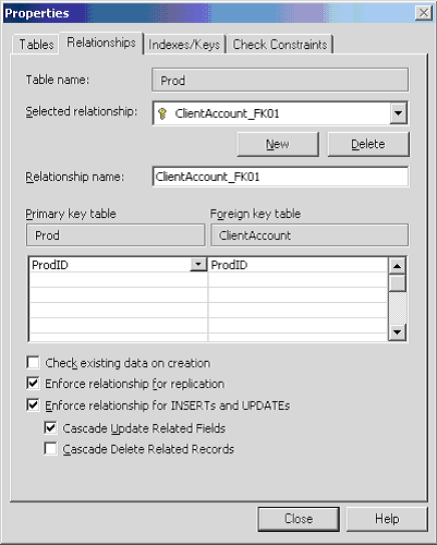 [ 1 ] - [ 2 ][1] The table whose columns are referenced by other tables in a one-to-one or one-to-many relationship.Rather than accepting the default value i.e. ClientAccount_FK01 that is given from upsizing.