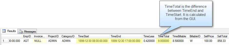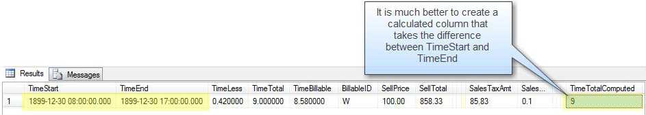 ALTER PROCEDURE procClientRateOutput @pstrClientID VARCHAR(6) = 'CABLE', @pstrCategoryID VARCHAR(6) = '<All>', @pstrEmpID VARCHAR(6)='AC', @pdteDate datetime = '1996/1/1', @curRate MONEY OUTPUT AS -- Description: Get the $Rate for this client and this employee -- and this category from Table ClientRate SET @curRate = ( SELECT TOP 1 Rate FROM ClientRate WHERE ClientID=@pstrClientID AND EmpID=@pstrEmpID AND CategoryID=@pstrCategoryID AND DateEnd > @pdteDate ORDER BY DateEnd ) IF @curRate IS NULL SET @curRate = ( SELECT TOP 1 Rate FROM ClientRate WHERE ClientID=@pstrClientID AND EmpID=@pstrEmpID AND CategoryID='<ALL>' AND DateEnd > @pdteDate ORDER BY DateEnd ) RETURNFigure: Good Example - stored proc that returns only an output parameter