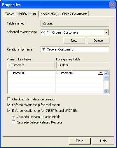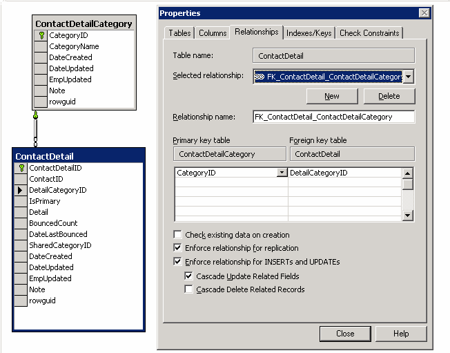 Figure: Relationship name shown on the other table We also believe in using Cascade Updates - but never cascade deletes.
