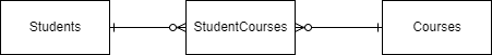 Let's imagine a university that wants to track students and courses. In this example, 1 student has many courses, and 1 course has many students, meaning it has a many-to-many relationship.