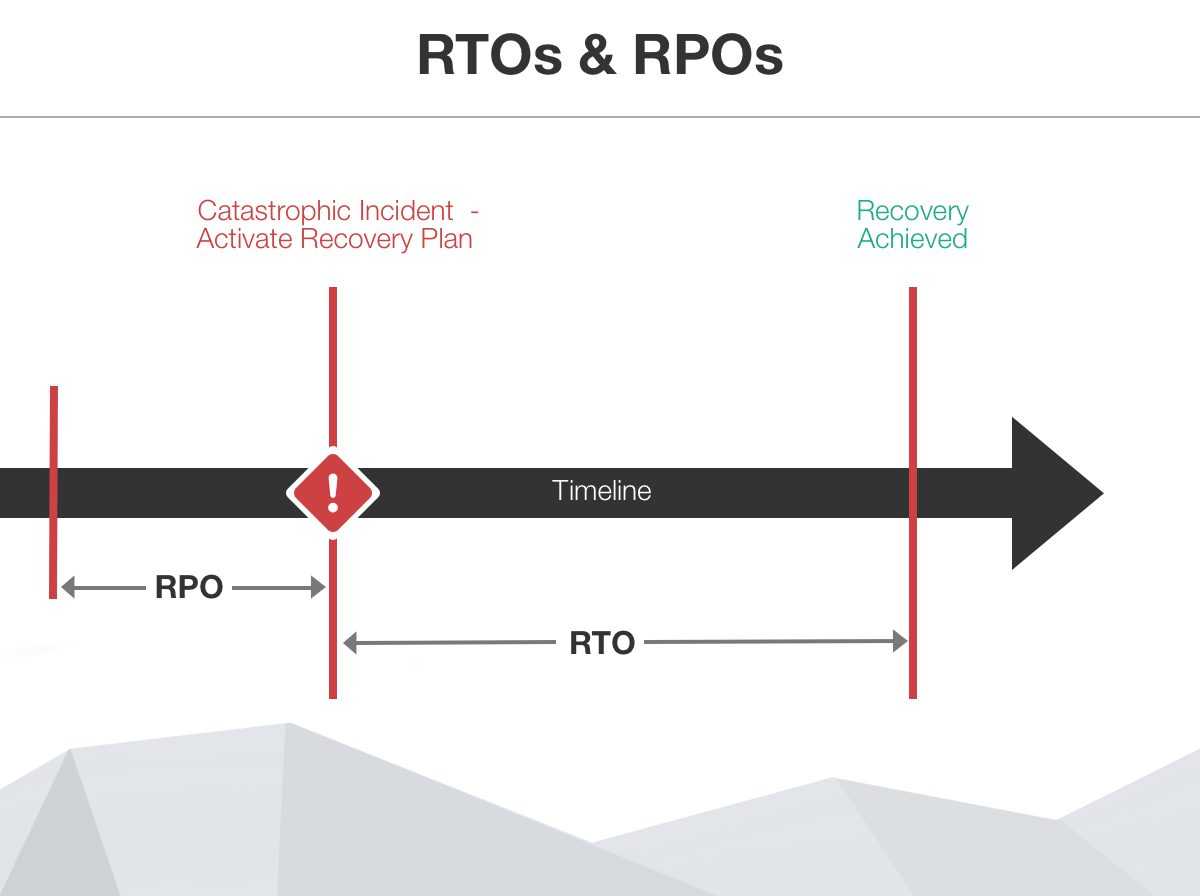 Note: these may all be different for different services. For example at a bank you may have a transaction database, this may need to be only ever able to experience a RPA\RTA of a few minutes as even in that few minutes, thousands of transactions could be lost. However the same bank may have a website that they are happy to have an RTA\RPA of several hours as this is much less critical to the banks overall operation.