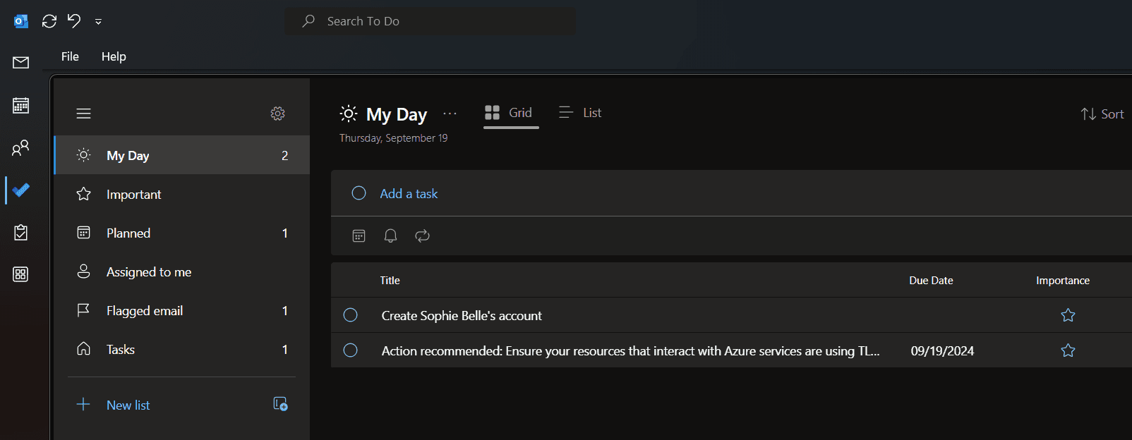 Microsoft To Do is available within Outlook, as a separate app, or on the web. It's a great way to keep track of tasks, reminders and other lists. It can also integrate follow up flags from Outlook.