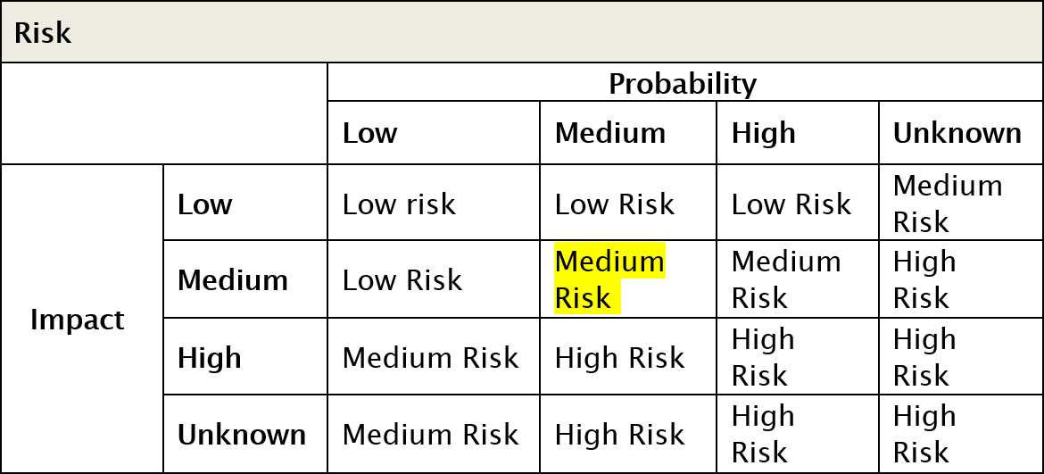 LOW RISK (LOW Probability and MEDIUM Impact)
