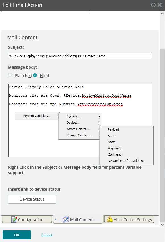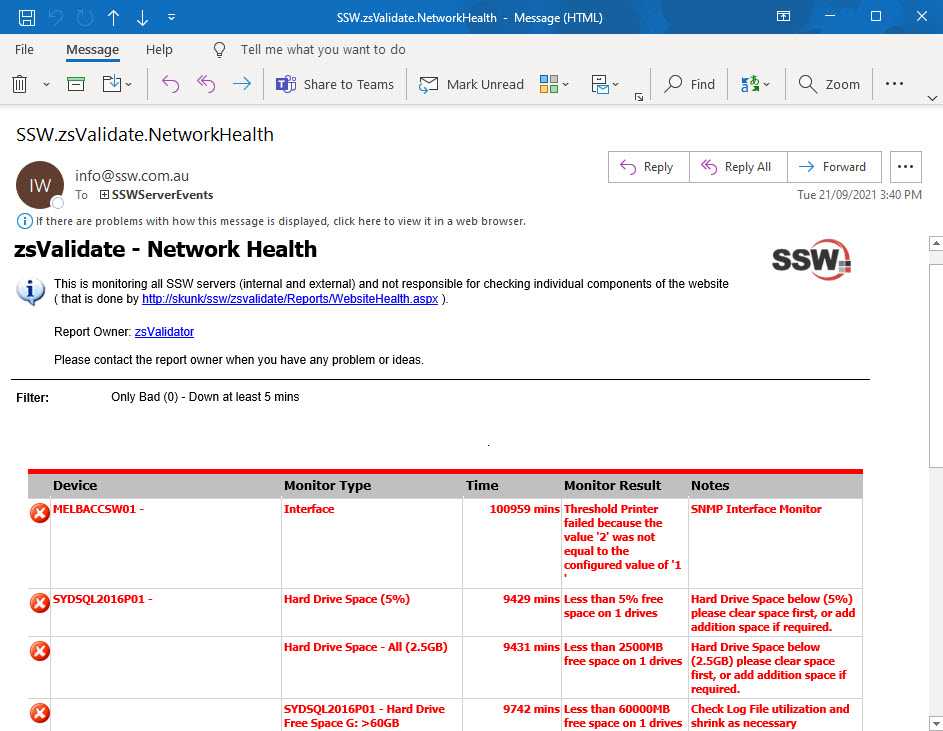 If you send an email it is a good idea to tell the user a way to monitor the network themselves. Eg. Software solutions like SCOM or WhatsUp Gold.