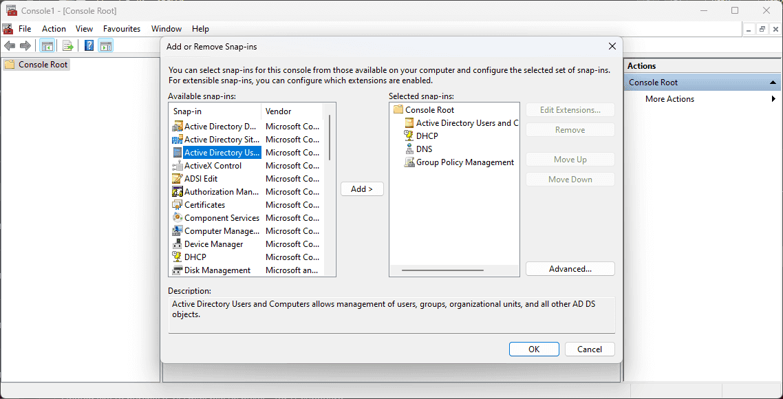 Go to File | Add/Remove Snap-in... to add the tools you need, e.g. ADUC, DHCP, DNS, GPO Management