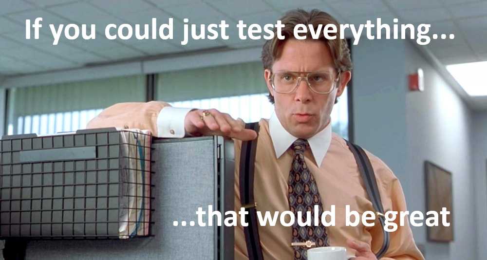 Figure: Bill Lumbergh might well ask someone to "test everything" (from the movie Office Space)