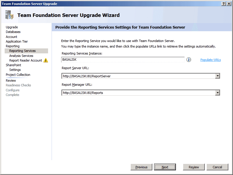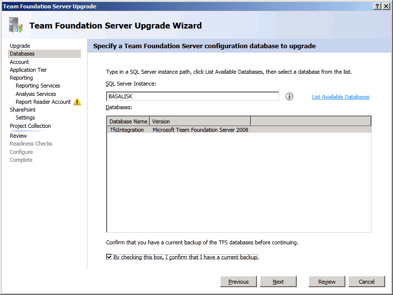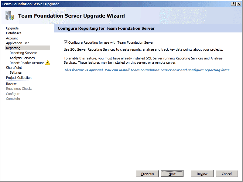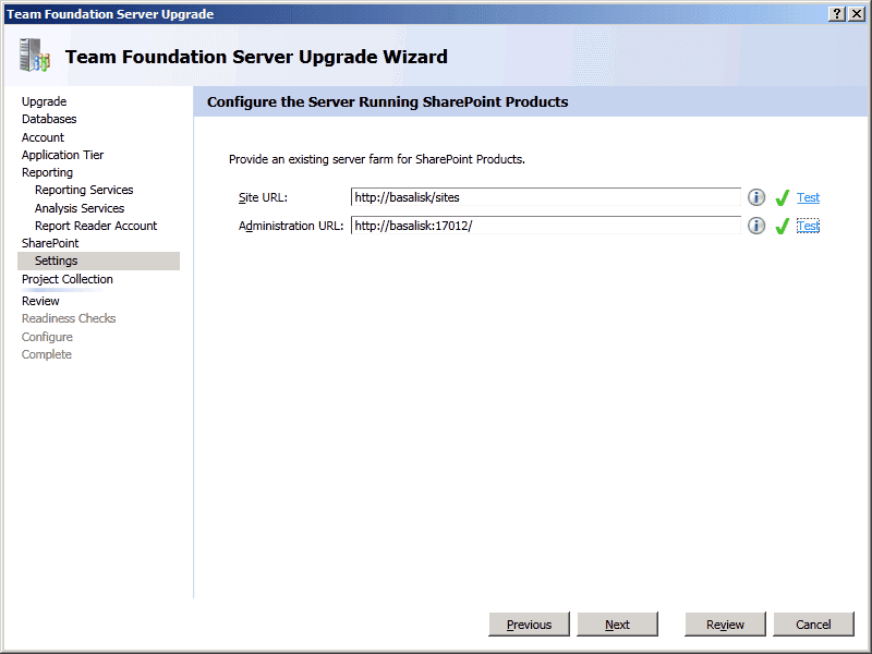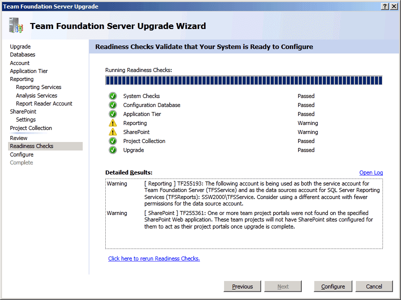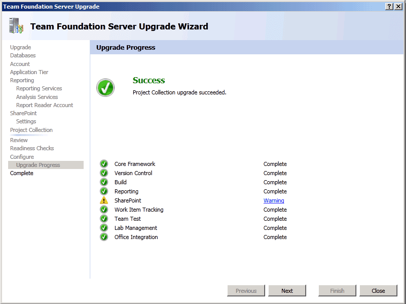TFS Upgrade Wizard - Configure - Upgrade Process