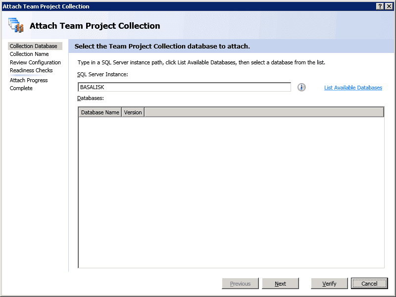 Attach Team Project Collection