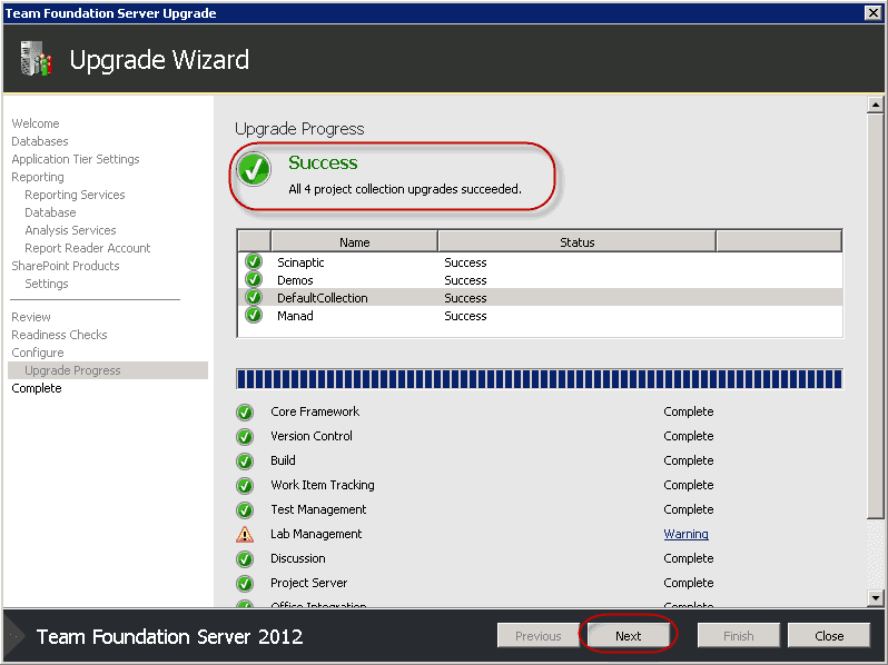 In this page we will look at upgrading an existing TFS 2010 server to a new TFS 2012 server. In this walkthrough, we assume you are currently using a single server configuration, but might want to separate your SQL Server from your TFS server. We also assume you have a DNS entry setup for external access at tfs.northwind.com.