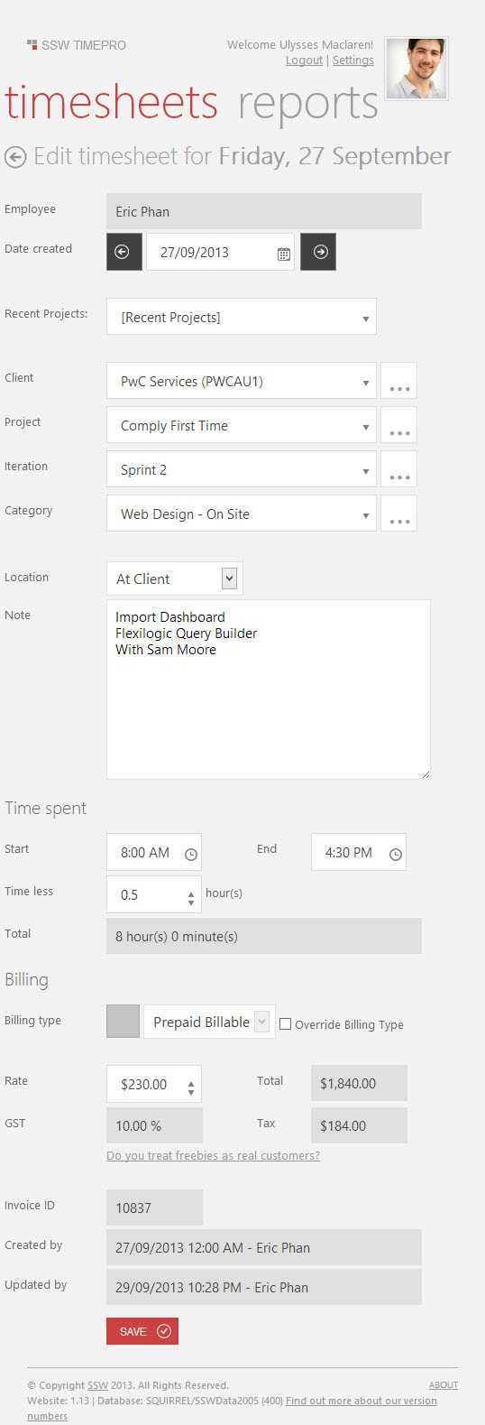 Remember to enter your timesheets at the end of each day, while they're still fresh in your mind.